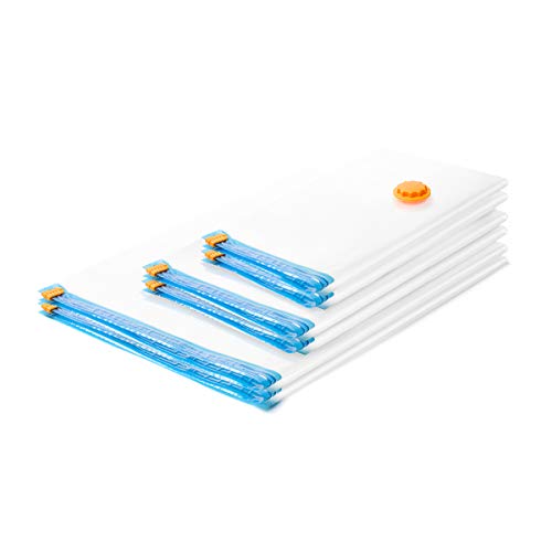VAC Q BAGS, sacchetti sotto vuoto premium, 6 pezzi, speciale pellicola forte, protezione dalle allergie per biancheria da letto, coperte, cuscini, sacchi per abbigliamento, da riporre nell'armadio o da portare in viaggio, Premium Paket