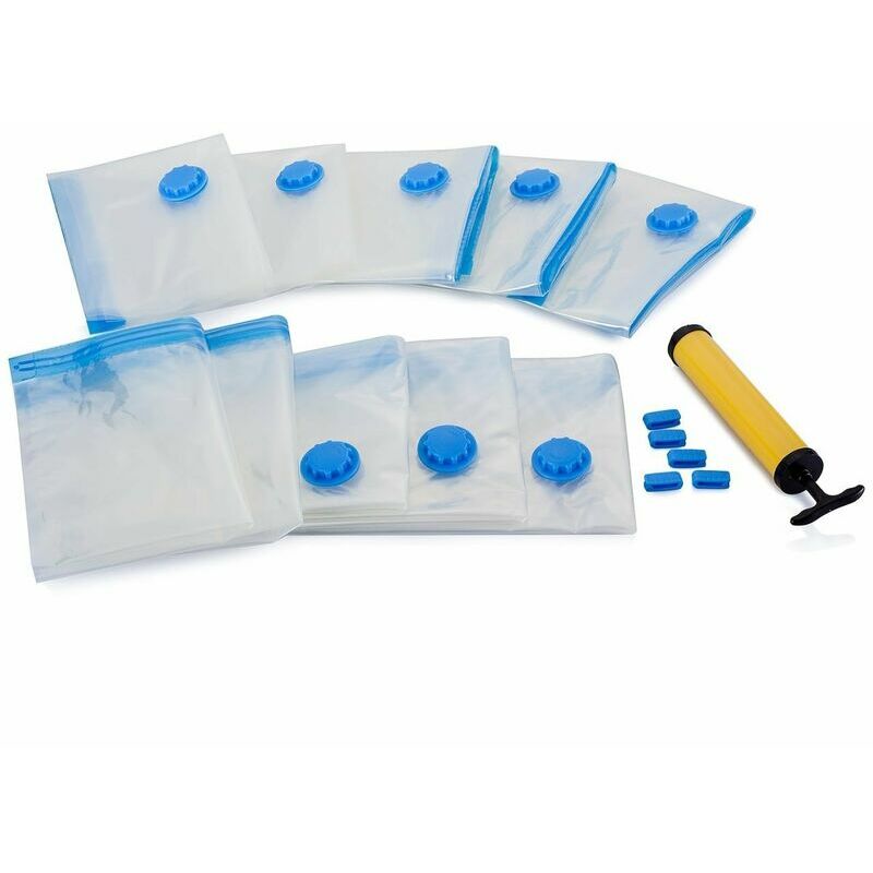 6 borse piccole per oggetti di medie dimensioni. Contiene 6-8 maglioni per borsa. Conserva federe, vestiti e altro ancora. 80% di spazio in più rispetto alle altre borse sul mercato Estrae tutta l'aria dalla borsa. L'esclusiva doppia cerniera e la valvola turbo a tripla tenuta sono progettate per rilasciare tutta l'aria dal sacchetto durante l'aspirazione e non lasciare nulla all'interno. Altri sacchetti di stoccaggio lasciano entrare aria e non soddisfano gli scopi. Non questi Aumenta il tuo spazio di archiviazione senza dover pulire l'armadio. Pompa da viaggio inclusa. Quando viaggi e desideri il massimo spazio per non dover portare molti bagagli, queste borse portaoggetti sono perfette. E quando avrai bisogno di rifare la valigia per il viaggio di ritorno, utilizza semplicemente la nostra pratica pompa da viaggio e le tue borse saranno nuovamente confezionate sottovuoto Consigli per l'uso: stendi il sacchetto sottovuoto e apri la cerniera. Riempi la borsa con i tuoi tessuti.