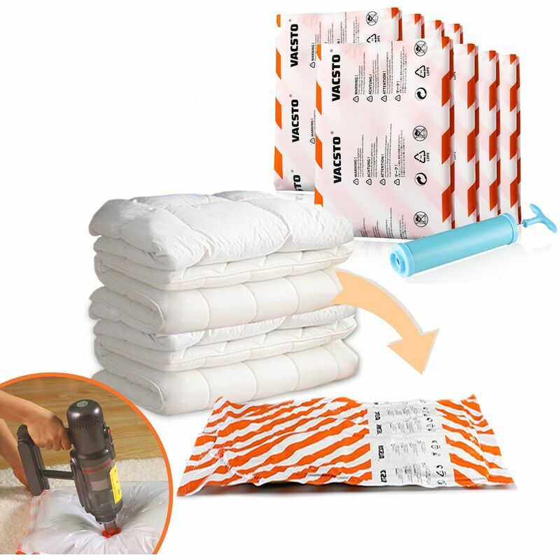 Aumenta lo spazio di archiviazione Se utilizzato correttamente, puoi risparmiare fino all'80% dello spazio di archiviazione. Non preoccuparti che la valigia o il guardaroba non abbiano abbastanza spazio Doppie cerniere e valvola di aspirazione unidirezionale. Le nostre borse portaoggetti salvaspazio sono progettate con doppie cerniere e valvola di aspirazione unidirezionale per isolare l'aria e sigillarla a lungo. Consigli per la conservazione Super Jumbo (50 x 40): 6 cuscini o 1 set letto matrimoniale Jumbo (40 x 30: 4 cuscini o 1 letto matrimoniale Large (32 x 24): 10-12 puff o 2 cuscini Medium (28 x 20): 8-10 puff Taglia S (24 x 16): 6-8 boccate. Suggerimenti: Se lo usi a casa, si consiglia di adattarlo a qualsiasi standard -Collega il tubo di aspirazione per risultati più rapidi.
