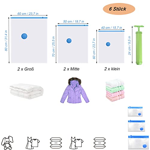 Sacchetti Sottovuoto, Sacchetti Riutilizzabili, Con Pompa a Mano, 6 Pezzi, Trasparenti