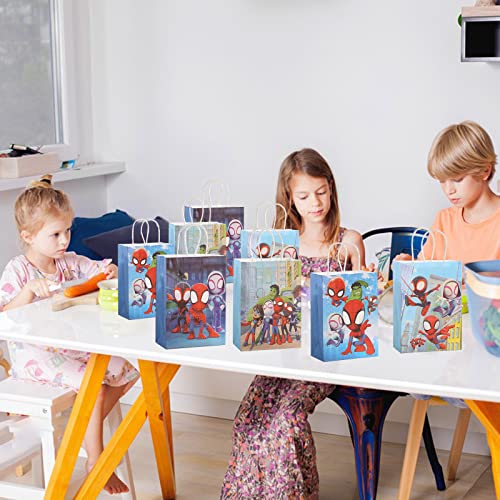 Sacchetti Spidey and His Amazing Friends Compleanno,Wopin- 16 Pezzi di Sacchetti Carta con Manici Piccoli,sacchetti carta kraft,Ottima da utilizzare come Borsa regalo/Sacchetti Regalo