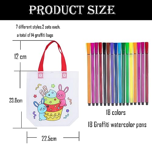 Sacchetti di stoffa per bambini, 14 pezzi fai da te per bambini, 1 set di matite in tessuto, graffiti, borse per il compleanno dei bambini, borsa in tessuto da dipingere, per le scuole