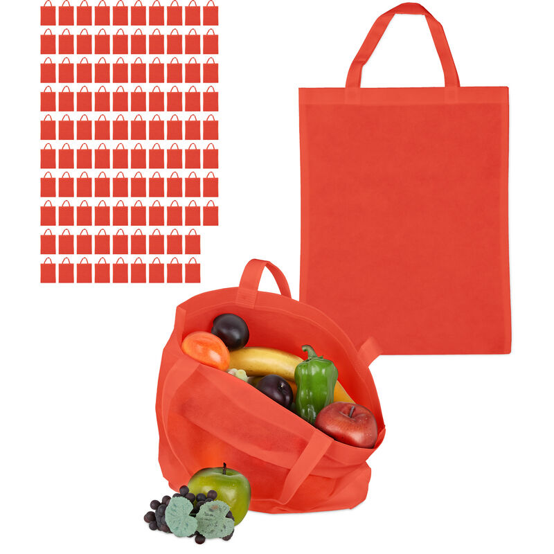 Con questo set da 100 buste in stoffa sarete equipaggiati al meglio per la vostra prossima spesa al supermercato o per lo shopping. Grazie ai manici corti, i sacchetti pieni di generi alimentari o acquisti vari possono essere comodamente portati fino a casa, senza rischiare di toccare il pavimento a causa del peso del loro contenuto. Possono essere piegati e trasportati ovunque senza ingombrare. Vengono utilizzati anche in caso di acquisti durante una passeggiata, senza dover usare buste in plastica inquinanti. Per apportare un tocco di individualità alle borse in stoffa a tinta unica, è sufficiente stamparle con scritte allegri o immagini Attenzione: non necessitano di essere stirati Set da 100 sacchetti di stoffa in dettaglio - Dimensione sacchetto (senza manici) HxL: 49,5 x 40 cm ca. - Lunghezza di ciascun manico: 16 cm ca. - Larghezza di ciascun manico: 2,5 cm ca. - Peso per sacchetto: 30 g ca. - Materiale: poliestere - Rosso Sacchetti di stoffa universali - Per acquisti, shopping