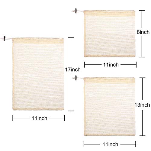 Funzione: La disegno della maglia di cotone ha buona permeabilità all'aria e rende frutta e verdura assorbire l'umidità in eccesso.La clip disegno lo rende facile bag chiudi e gli oggetti all'interno non cadranno
