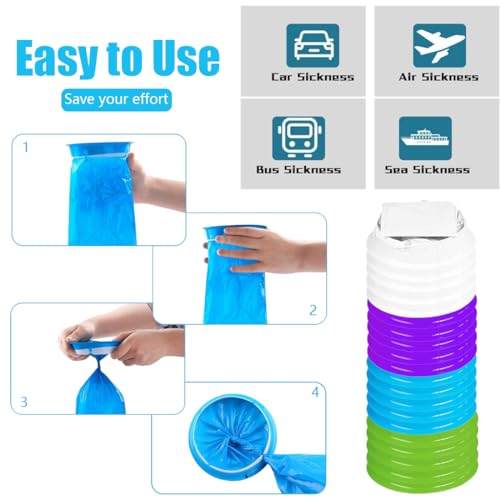 20 Sacchetti Per Il Vomito, Sacchetti Per Il Vomito Per Auto, Sacchetti Monouso Per Il Vomito Con Anello Di Chiusura, Opachi, Resistenti Allo Strappo, Adatti a Bambini e Adulti, 4 Colori