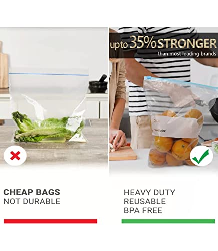 Sacchetti zipper per alimenti 30 sacchetti Grande 6L in plastica adatti per freezer,senza BPA conservazione degli alimenti per pizza, frutta, snack, carne