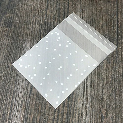 Da.WA, sacchettini autoadesivi in cellophane trasparente a pois bianchi, sacchettino in plastica per biscotti, dolciumi, idea regalo per feste