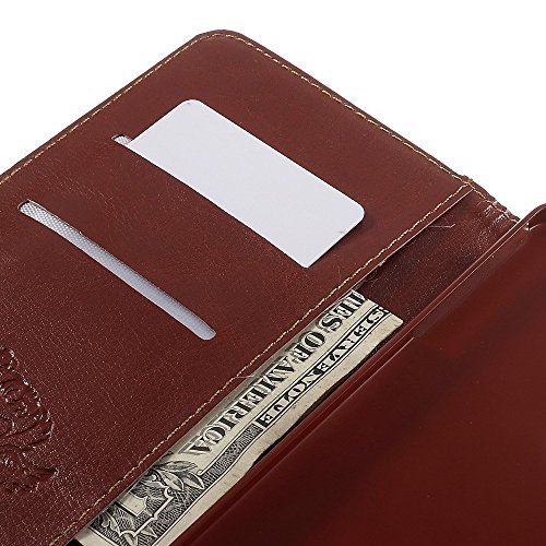 Sacchetto di custodia ecopelle manica Custodia protettiva compatibile con Huawei Ascend Mate 7 (MT7), lato chiusura magnetica con ancoraggio / New York design pattern (bianco, marrone)