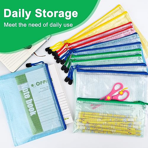 TUFA Sacchetto del Documento, 26 Pezzi Buste Plastica Zip A5+A6, Sacchetto di Zip Impermeabile Mesh per Documenti, Ricevute, Cosmetici, Materiale Scolastico