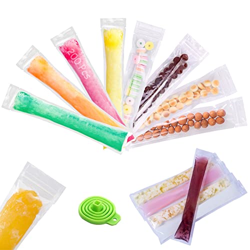 200 Pcs Sacchetto per Ghiaccioli Monouso Borsa Alimenti per Sacchetti di Ghiaccioli Senza BPA Sacchetti per Muffe Ice Popsicle con Imbuto per Diy Snack Yogurt Frullati Gelato Party(6 * 22cm)
