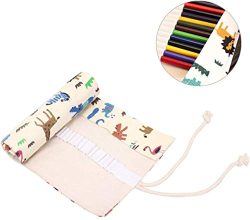 Sacchetto della Matita di Tela con 36 Fori (Senza Matita), Asnlove Cassa di Matita Rotolo Fino a Borsa Portapenne Astuccio PortaMatite Pastelli Colorata Roll-up Canvas Wrap Stoccaggio, Animale