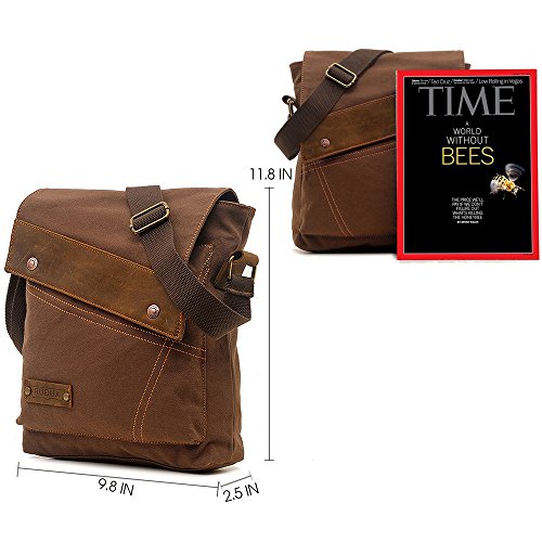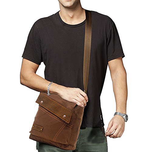 AOKE Sacchetto del messaggero della tela di canapa, sacchetto casuale del risvolto del crossbody del casco degli uomini dell'annata di piccole dimensioni per il ridurre in pani del iPad 9.7 "