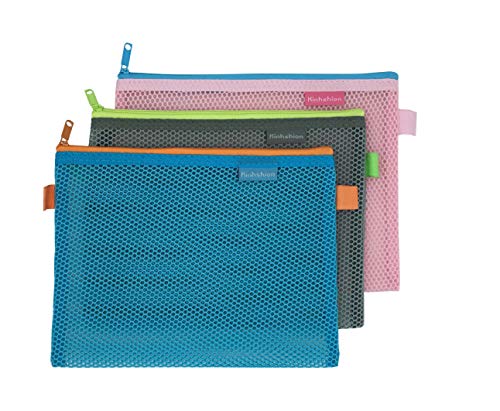 Sacchetto in mesh, 3 pezzi, con cerniera, piccolo organizer da borsetta, trasparente, per trucchi, adatto per viaggi, dimensioni: 22,3 cm x 17,8 cm, colore casuale