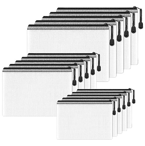 Sacchetto di Plastica con Cerniera, Borse di File, 15 pezzi A4 + A5 + A6 Sacchetti per Documenti, Sacchetto di Zip Impermeabile per Documenti, Cosmetici,Viaggio (nero)