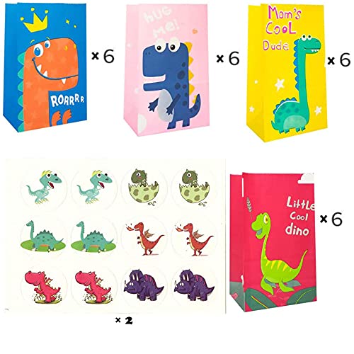 24 Pcs Sacchetto Regalo Dinosauro,Sacchetti Regalo di Carta,Sacchetti di Carta Dinosauro con 24 Adesivo Dinosaur,Sacchetto Candy,Sacchetto Regalo per Bambini Feste di Compleanno