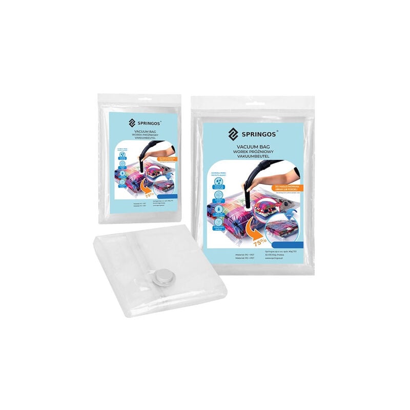 Il sacchetto sottovuoto della marca Springos è la soluzione perfetta per conservare e proteggere vari vestiti e biancheria. Realizzato con materiali di alta qualità PA+PE, il sacchetto garantisce resistenza e protezione dall'umidità, dalla polvere e da altri agenti esterni. Il colore trasparente del sacchetto permette di identificare facilmente il contenuto senza doverlo aprire. Invece, il colore grigio del nastro e del tappo assicura facilità di apertura. Le dimensioni del sacchetto sono di 40x60cm, il che lo rende sufficientemente grande da poter contenere vari oggetti come abiti, biancheria, cuscini, coperte e altri tessili. Il sacchetto sottovuoto garantisce un utilizzo ottimale dello spazio, minimizzando il volume degli oggetti conservati. Una delle caratteristiche distintive del sacchetto è il nastro rinforzato con doppia chiusura a cordino. Questo nastro resistente garantisce una chiusura efficace del sacchetto, mantenendo l'aria all'esterno e proteggendo il contenuto dagli