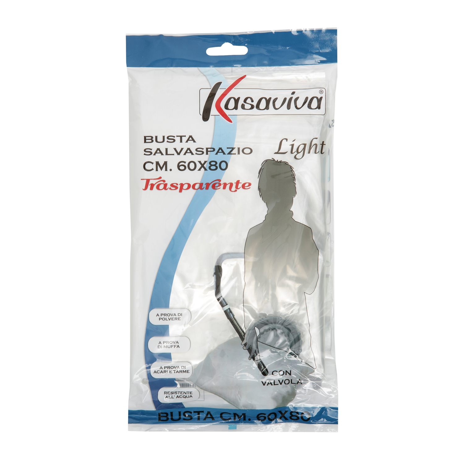 Le custodie sottovuoto offrono il metodo più comodo per riporre i vestiti nell'armadio senza occupare troppo spazio! Sarà sufficiente porre i capi all'interno della busta, con dimensione 60x80 cm, e rimuovere l'aria con l'ausilio di un aspiratore. In questo modo otterrai un risultato perfetto e pronto per essere riposto in cassetti e vani del guardaroba occupando il minimo ingombro. La busta sottovuoto preserva i capi a polvere, tarme e altri agenti esterni: perfetta per il cambio di stagione!