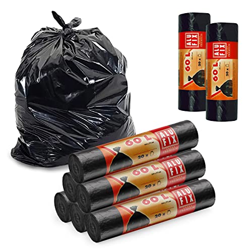 Sacchi della spazzatura in alluminio nero extra forti, 60 l, 64x71 cm, materiale LDPE, 8 rotoli con 20 pezzi, estremamente resistenti agli strappi, sacchetti della spazzatura, ideali per la casa