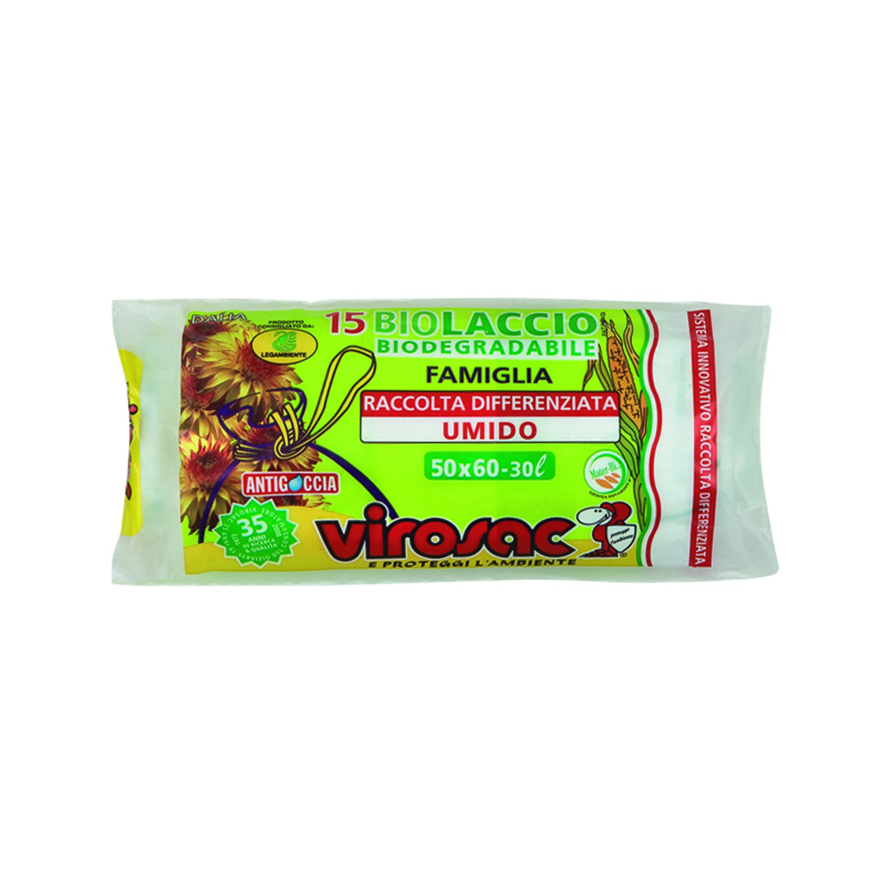 In Mater-Bi, Biodegradabile. Indicato per la raccolta di rifiuti organici