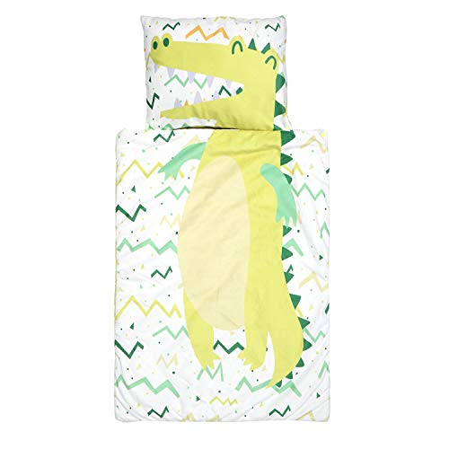 Sacco a pelo per bambini e bambini, 3 in 1, con motivo a caricatura, per asilo, casa, viaggio (bianco coccodrillo)