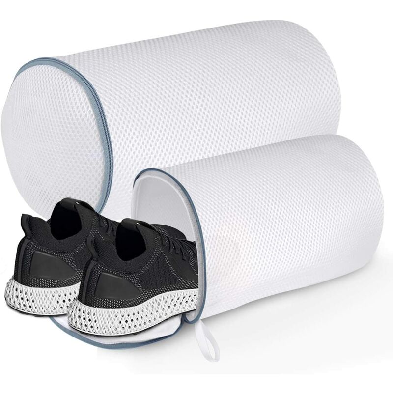 Set di 2 sacchetti per biancheria per scarpe in 2 misure: Dimensione: 13 x 8 x 8 pollici/33 cm x 20 cm x 20 cm (L x P x A), 11,4 x 6,7 x 6,7 pollici/29 cm x 17 cm x 17 cm (L x P x A). Diverse dimensioni per soddisfare le diverse esigenze di scarpe, offrendoti una varietà di opzioni. Design cilindrico: La nostra borsa per il lavaggio delle scarpe è realizzata in spessa fibra di poliestere con una robusta staffa di plastica su entrambe le estremità per evitare che la borsa si deformi o si pieghi proteggendo la scarpa da danni durante il processo di lavaggio. Protezione con chiusura automatica e cerniera lampo: Il design speciale con chiusura automatica della cerniera impedisce l'apertura del sacchetto della biancheria per le scarpe durante i cicli di lavaggio e asciugatura. Inserisci la testa della cerniera nella copertura laterale di sicurezza prima del lavaggio per evitare che la cerniera si graffi e danneggi la macchina. Protezione completa per la forma delle scarpe: Può impedire