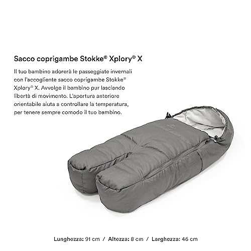 Sacco coprigambe Stokke Xplory X, Grigio Moderno - Tiene al caldo il bambino durante le fredde passeggiate - Fodera e pile Sonalan + Esterno idrorepellente - Apertura anteriore regolabile