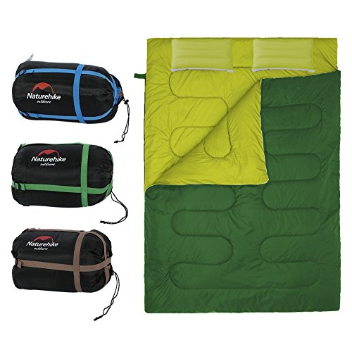 Sacco a Pelo Doppio Portatile con 2 Cuscini e Borsa da 4 Stagionali per Campeggio Escursionismo (Colore: Army Green)
