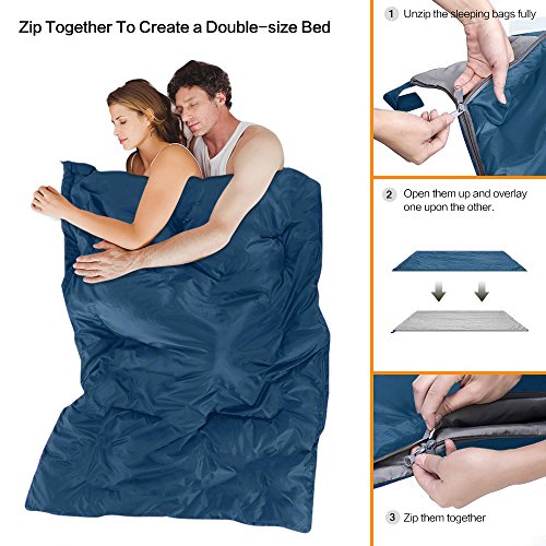 ★ Sacco a pelo XL con chiusura a zip: Si apre a 205 x 83,8 cm grandi dimensioni per ospitare comodamente un adulto. Una volta aperto, il sacco a pelo è utilizzabile come una coperta, e inoltre è possibile unire facilmente 2 sacchi con la cerniera per un letto di dimensioni doppie, ideale per 1/2 persone, adulti, ragazzi e bambini oltre i 5 anni di età, garantendo un comodo riposo notturno al caldo.