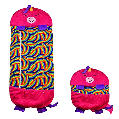 Sacco a pelo 2 in 1, pieghevole, con cuscino per bambini, materiale morbido e lavabile in lavatrice, peluche, regalo per ragazzi e ragazze (unicorno rosa)