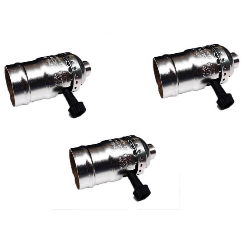 Sacco di chrome 3 tipo di Socket E27 per passare vintage Caratteristiche tecniche: Dimensioni: Ø 8 x 3 cm Formato del tipo E27Commutatore rotanteMontaggio molto semplice250W massimoLivree nessun cavo in scatole individuali scatola (scatola)