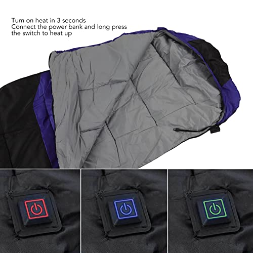 Sacco a Pelo Riscaldante Elettrico, Piumino di Cotone Sacco a Pelo Termico con Piastra Riscaldata USB Singolo A Prova di Calcio Leggero con Strumento di Stoccaggio per Campeggio All'aperto(Blu)