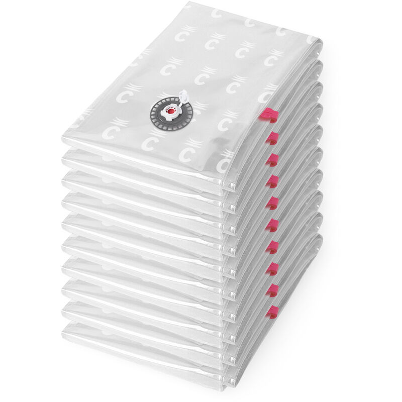 Set 10 sacchi salvaspazio sottovuoto Aspispace L: Il set di 10 sacchi salvaspazio sottovuoto Compactor Aspispace L ti permette, con l'aiuto di un aspiratore, di riporre sottovuoto cuscini, piumoni, coperte o vestiti, finalmente al riparo da polvere, acari o umidità. Utilizzando Compactor Aspispace guadagni il 75% di spazio in più nel tuo armadio! Dotati di valvola universale, i sacchi salvaspazio sottovuoto Compactor® sono compatibili con tutti i tipi di aspirapolvere. Il set 10 Compactor Aspispace L è parte della collezione Compactor Aspispace, scopri tutta la collezione di Sacchi Salvapazio Sottovuoto COMPACTOR®. Funzionalità e Benefici del Sacco Salvaspazio Sottovuoto Aspispace: Facile da Usare: Compressione sottovuoto rapida e facile. La busta sottovuoto è Anti-polvere, anti-acari e anti-umidità. Compatibile con tutti i tipi di aspirapolvere (o con la Pompa Manuale Compactor ). Protegge la biancheria senza rovinare i tessuti. Può contenere l'equivalente di 5 piumoni singoli e 5