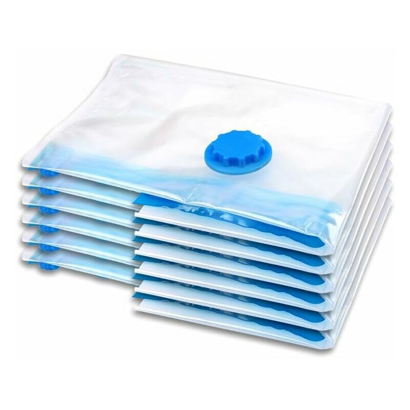 1.Inserire gli oggetti nella borsa Non conservare cibo, pelle in queste borse Non conservare oggetti con spigoli vivi o spigoli vivi in quanto potrebbero bucare la borsa< br/> Assicurati che tutti gli articoli siano asciutti prima di riporli nelle borse salvaspazio 2.Chiudi la borsa Afferra saldamente il cursore della cerniera con il pollice e l'indice. Quindi fai scorrere la cerniera sopra la parte superiore della borsa. Assicurati di far scorrere la cerniera avanti e indietro almeno due volte. Premere un po' più forte per garantire che sia stata creata una tenuta ermetica e che l'aria non fuoriesca 3.Posizionare il tubo del vuoto nella valvola Posizionare il tubo circolare sulla valvola, fare assicurarsi di posizionare il tubo al centro della valvola. L'estremità circolare del tubo deve riempire completamente la valvola. Quando il sacchetto smette di restringersi, significa che hai completato il processo di sigillatura 4.Chiudi il coperchio Una volta terminata la sigillatura del