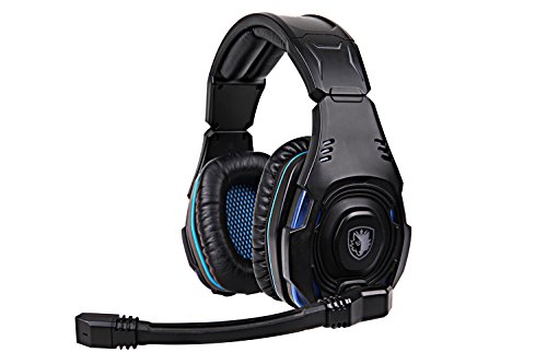 Sades SA907 - Cuffie USB Surround da 7.1 per PC Gaming Professionale, Luci LED Blue, Microfono HiFi, Controllo del volume (Nera)