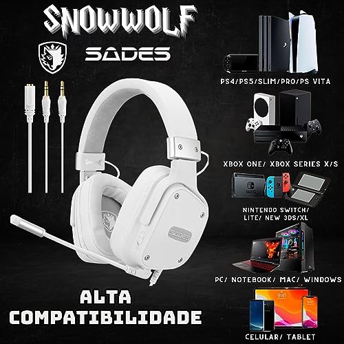 SADES Snowwolf SA-722S - Cuffie da gioco, colore: bianco, 18,5 x 9 x 26,5 cm