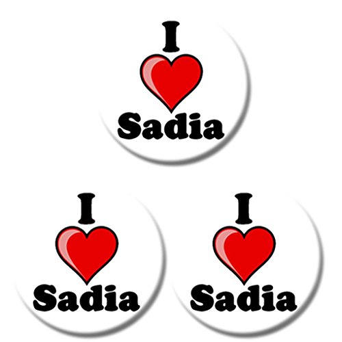 Set di tre i Love Sadia Button Badges - taglie a scelta - 25 mm & 38 mm, Printed Design, 38 mm (3.8 cm)