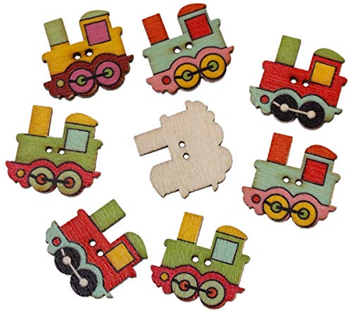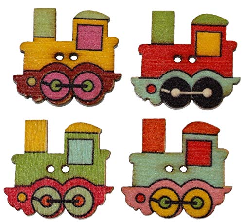 Sadingo Bottoni in Legno per il cucito, bambini Bottoni - 10 pezzi - Locomotive - 25 X 22 mm - 2 fori - zufaelliger Mix
