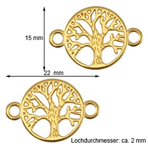 Sadingo DQ, connettore per gioielli in metallo, ciondolo albero della vita, 3 pezzi, 22 x 15 mm, gioielli fai da te, braccialetto in tessuto gold