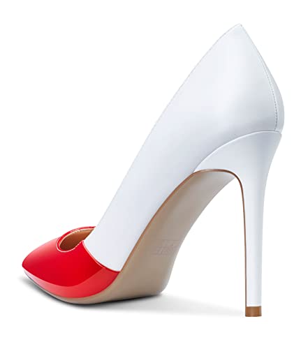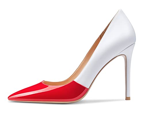 Saekcted Tacchi Alti Donna Spillo Punta Punta Scarpe 10 CM Heel High Heels Pumps Rosso Bianco 43 EU