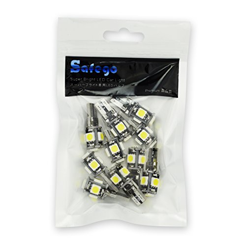 Safego 10 x LAMPADINE T10 W5W LED 194 168 cuneo Tipo 5 SMD 5050 bianco LED luci dell'automobile Bulb 12V diretto Replacment e Reverse Auto RV per Interni Segnale Segnale cuneo Tipo