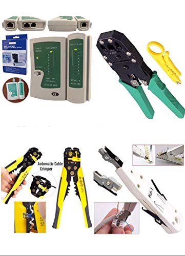 Safekom RJ45 Crimping Tool Cable Tester Punch Down Tool RJ45 RJ11 RJ12 Cat5 Cat5e Cat6 Ca6e Cat7 Crimping Crimper Wire Stripper Stripping Cutter Tools Punch Down Tool Kit For Networking Ethernet Internet Cable Telephone Cables & Electrical Terminal Wire Cutter Professional 5 in 1 Multifunctional Heavy Duty Stripper Stripping Cutting Tool Automatic Self Adjusting Ratchet 10-22 AWG