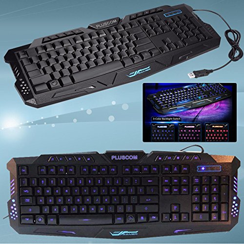 Safekom illuminato a LED retroilluminato retroilluminazione USB Wired Multimedia ergonomica Gaming tastiera