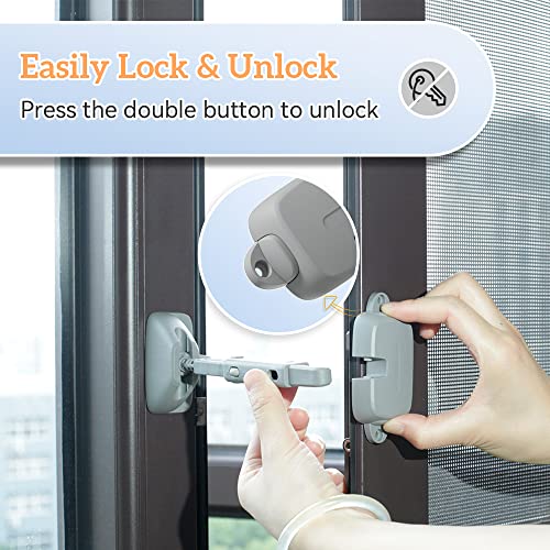 ☀ Blocca e sblocca facilmente - Premi il doppio pulsante per sbloccare la serratura e la finestra può essere aperta o chiusa liberamente. Nessuna chiave o altre parti mancanti con la serratura installata. Regola lo spazio della finestra premendo e tenendo premuto il pulsante di scorrimento sull'asta e spingendo o tirando la finestra. Facile da usare per gli adulti ma difficile per i bambini.