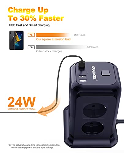 SAFEMORE - Ciabatta elettrica a 8 prese con 4 porte USB (2 USB C) e cavo da 1,85 m (5 V/4,8 A), protezione da sovratensione e cortocircuito, colore: blu