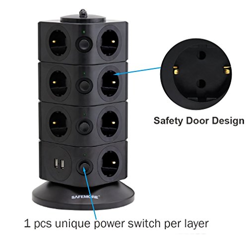 15 prese con protezione di sovraccarico includono PORTA della CASSAFORTE che proteggerà i bambini da una scossa elettrica.
