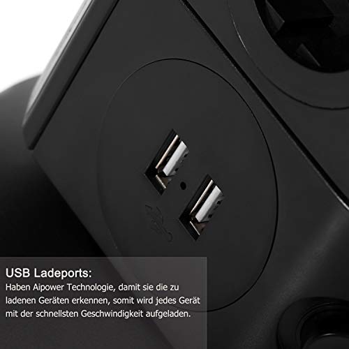 SAFEMORE Torretta Multipresa Verticale Multipresa Elettrica Scrivania con 15 Prese Schuko e 2 Porte USB e Interruttori Protezione di Sovraccarico,nero, 2500W/10A