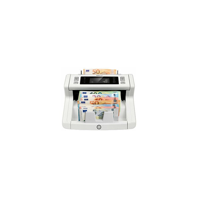 Contabanconote per banconote di tipo diverso, 2265, 5 controlli anticontraffazione. Fornitura = montato. Tipo di prodotto = apparecchi di verifica/contadenaro. Campo d'applicazione = banconote. Campo d'impiego = conteggio del valore, controllo. Valuta = tutte (EUR, GBP misto). Rilevamento di banconote false = dimensioni, caratteristiche UV, caratteristiche magnetiche, colore / immagini, spessore. Capacità = 300 banconote. Velocità = 1200 pz./min. Tensione di alimentazione = AC 220 - 240 V. Altezza = 225 mm. Larghezza = 300 mm. Profondità = 340 mm. Colore = grigio chiaro. Peso = 5.8 kg. Contabanconote per banconote miste EUR e GBP. Per contare banconote smistate di altre valute. Per contare fino a 1200 banconote al minuto. Per controllare fino a 5 caratteristiche di sicurezza: UV, MG, dimensioni, colore, spessore. Allarme per banconote sospette o per banconote di diverse dimensioni. Adatti per il rilevamento di serie di banconote attuali e nuove. Impiego facile e veloce. Funzione