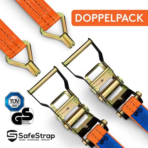 SafeStrap Cinghie di Fissaggio con Ganci - con Tüv G/S - Cinghie con Cricchetto Estremamente Robuste Conformi alla Normativa EN 12195-2 - Cinghia Cricchetto di 6m con Capacità 2000kg [2]