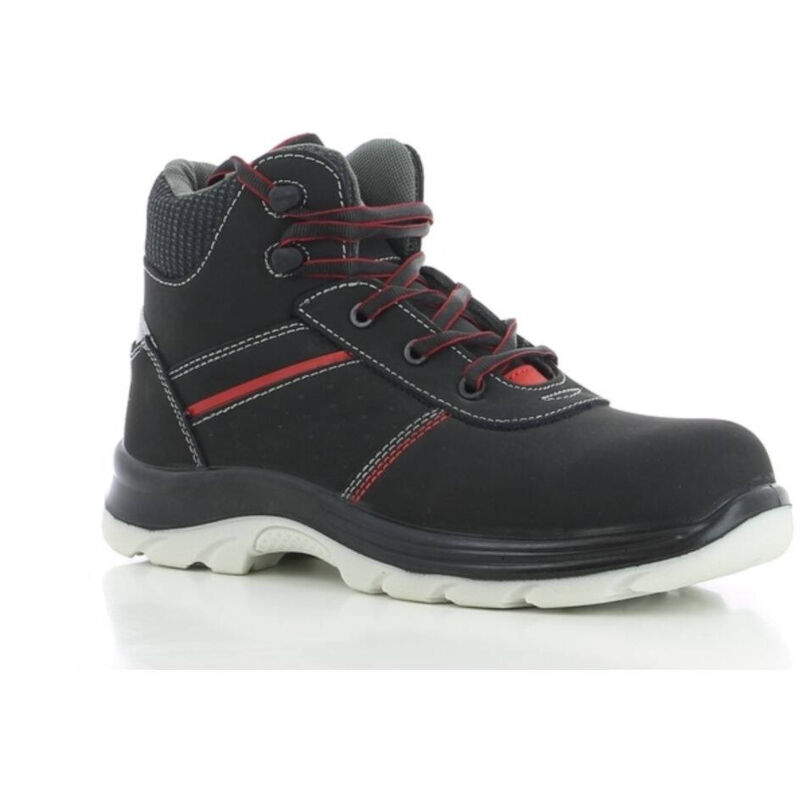 Standard: S3 - SRC 100% non metallico Scarpa in pelle nabuk Idrorepellenti Colore grigio Fodera in rete di nylon traspirante Antistatico Suola antiscivolo SRC Suola flessibile antiperforazione SJ FLEX Antiurto Puntale in composito Suola PU/PU Tacco con sistema di assorbimento degli urti Suola resistenti all'olio Fodera traspirante Tomaia impermeabile Parte rifrangente sul tallone Peso di una scarpa nella taglia 41: 640 g Informazioni aggiuntive: Gli involucri protettivi e i cappucci terminali standardizzati EN 20345 resistono a un'energia di 200 Joule. Questa energia corrisponde a un oggetto di 20 kg che cade da un'altezza di un metro. In caso di schiacciamento (altezza di caduta pari a 0), il guscio protettivo 200J resiste ad una forza pari a 1.500 kg