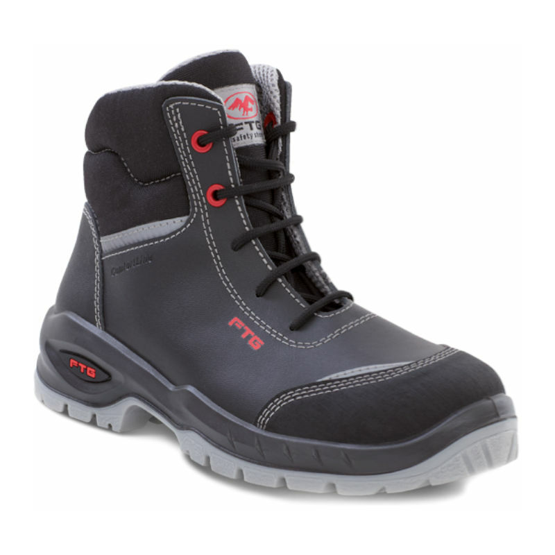 Calzatura alta in pelle fiore liscia nera, fodera 100% poliestere, sottopiede non metallico HRP, soletta Light & Soft antistatica e traspirante, suola in poliuretano bidensità resistente alle flessioni e alle abrasioni, antiolio, antiscivolo, antistatica Plus Intersuola particolarmente studiata nella sua densità per favorire la morbidezza a tutto vantaggio del comfort. Campi di impiego suggeriti - Edilizia/carpenteria - Lavori pubblici - Agricoltura/zootecnia - Industria navale - Industria mineraria - Cooperative TOMAIO Pelle fiore liscia nera con imbottitura al malleolo.Inserti in HIGH-TEX FODERA 100% poliestere con lavorazione a nido d'ape SOLETTA LIGHT & SOFT, antistatica e traspirante SUOLA Poliuretano bidensita' con effetto traslucido PUNTALE Non metallico TOP COMPOSITE LAMINA Sottopiede non metallico HRP INSOLE CALZATA 12